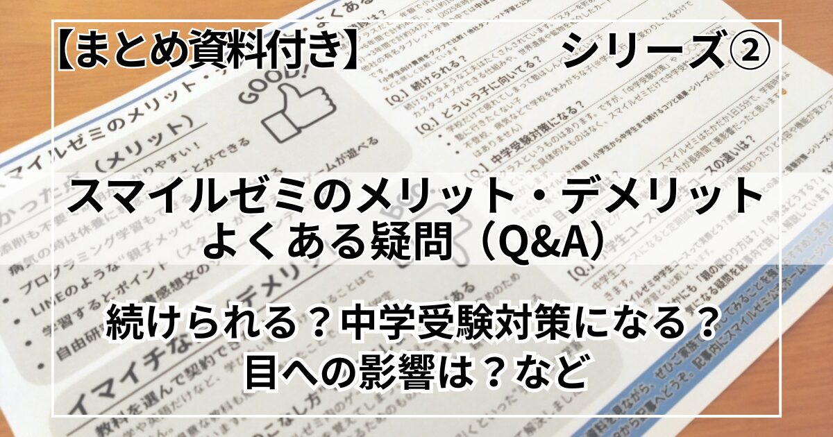 このシリーズ記事は全4本構成になっており、本記事は②スマイルゼミのメリット・デメリット・よくある疑問(Q&A)になります。